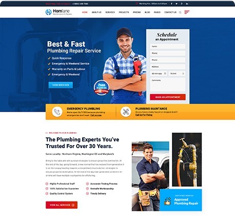 🔎 Preview Demo 🧰 Homlane Plumbing WordPress Theme — Professional Website Template for Plumbers &…
